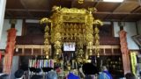本堂で護摩木を直接炎に投入してお祈り、退出