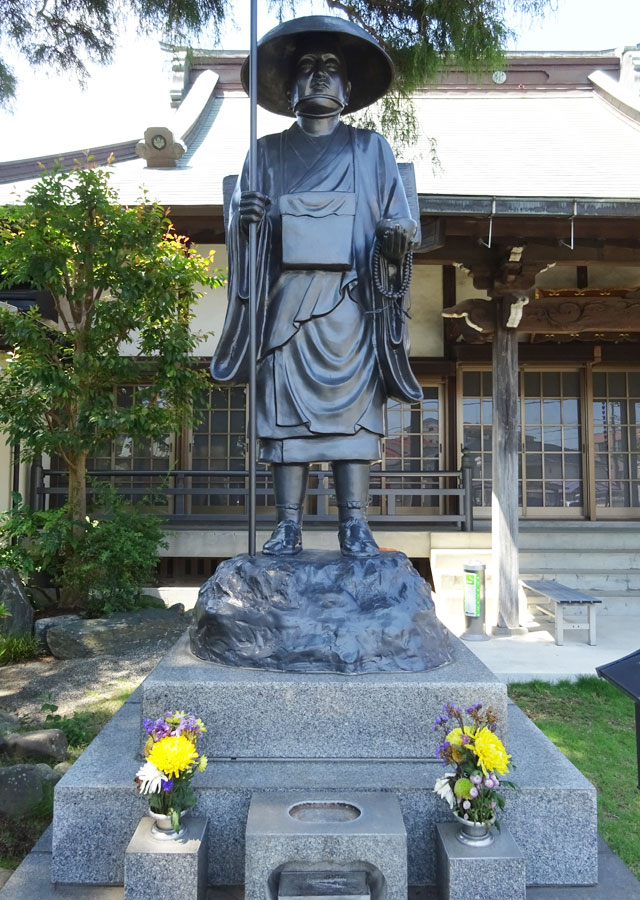 境内には弘法大師空海上人さまの修行像が参拝者を迎え入れて下さるように建立されております。 真言宗では法事、葬儀などのご供養、願い事の際はもちろん、日々感謝の念をもって弘法大師空海上人さまに対する御宝号「南無大師遍照金剛(なむだいしへんじょうこんごう)」をお唱えします。 参拝の折は、お大師様にお手をお合わせになり、感謝の気持ちをお伝え下さいませ。